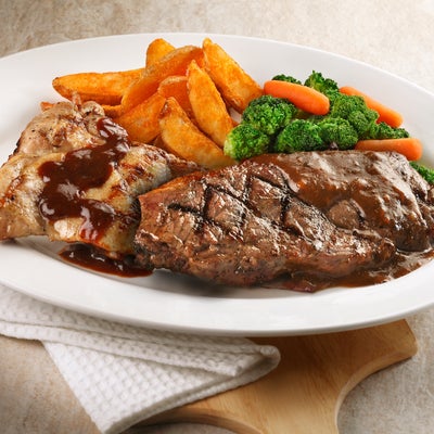 Prime sirloin charbroiled to your preferred doneness combined with your choice of grilled chicken.