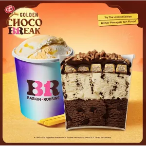 2 x 12oz. Get 1 handpacked pint and 1 Golden Choco Pint. Golden Choco Pint is topped with KitKat Pineapple Tart fingers, drizzled with chocolate and sprinkle of KitKat crumble.