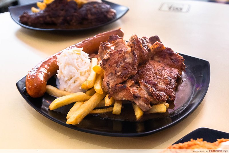 Located along the outer shop rows of United Square, it is not so easily found. Go through the exit passage way to the outer rows and walk along it until you find this restaurant. It isn't very large but the interior decor has distinctly German beer bar vibes. Service is fast at lunch as dining crowds tend to be dinner for the drinks. Enjoyed the thick flavourful oxtail soup with plenty of meat chunks, aside from the oxtail bones. Sauerkraut goes well with schnitzel of your choice (chicken or pork). Well fried with typical breaded coating, the accompanying chips were tasty too with seasoning.