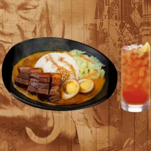 Silky rice noodles served in thick, rich and tasty coconut soup, accompanied with an assortment of fresh ingredients. Set comes with your choice of Drink.