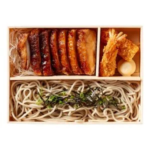 Fried Chicken Thigh with Teriyaki Sauce & Breaded Shrimp Cold Soba