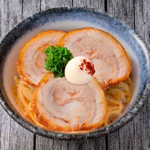 Using extra-thick, wavy noodles created specially for this ramen, every bite is firm yet bouncy and chewy. The broth combines our signature tonkotsu pork broth with a deeply flavourful chicken broth in a delicate balance, delivering a richer aroma and umami. Topped with a generous slice of Kurobu