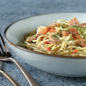 A savoury-sweet festive favourite featuring smoky chicken bak kwa, fluffy chicken floss, capsicum, cherry tomatoes and juicy pineapple tossed in pasta.