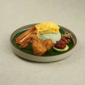 Fragrant pandan coconut rice served with signature sambal chilli, crispy ikan bilis & peanuts, egg , otah and chicken cutlet. No customization of item is allowed. Photo is for illustration purposes only.