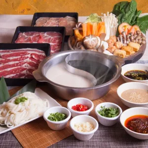 Consists of: Beef (400g), Pork Collar (400g), Chicken (400g), Mixed Vegetable Platter, Cheese Tofu, Salmon Fish Ball, Fish Ball, Udon, 1 Soup, 4 Sauces, 4 Condiments.