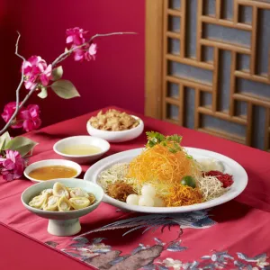 Baby Abalone with Crispy Yam & Longan Yu Sheng (M) + XO Seafood Fried Rice (S)