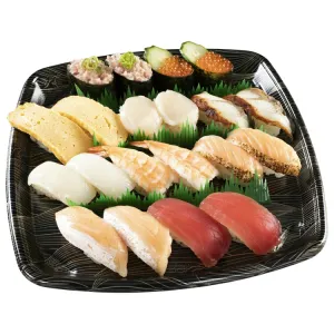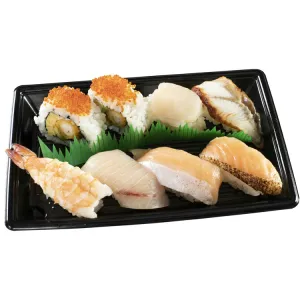 2 Broiled Salmon Belly, 2 Salmon Belly, 2 Swordfish, 2 Shrimp, 2 Grilled Eel, 2 Scallop, 4 Fried Shrimp & Avocado Roll