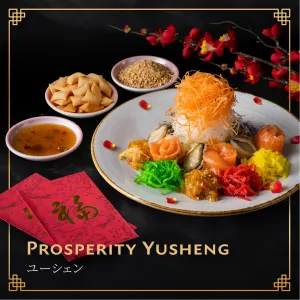 Baby abalone, salmon sashimi, white & green radish, carrot, purple cabbage, red ginger strips, chuka wakame, chuka kurage, kizami takuan, sweet lime strip, crushed peanut, pok chui crackers Served with housemade yusheng sauce of yuzu honey, plum and more